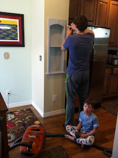 - Bryan installed this great little nook/niche thing in the kitchen over the weekend and went ahead and wired for above and below cabinet lighting since he had the wall cut open. I am hopeful that we will soon display family portraits (getting taken on Sunday downtown Denver outside!!) in the new nook.